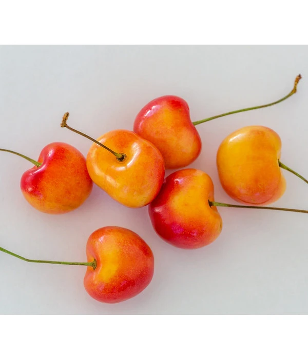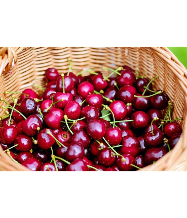 Mit dem Kirschen-Duo ‘Regina/Napoleon‘ im Garten können Sie sich auf und über einen wunderbar langen Kirschensommer freuen, in dem Sie in Kirschen schwelgen werden! Denn nachdem das Kirschen-Duo ‘Regina/Napoleon‘ im Frühling malerisch geblüht und dabei seinen angenehmen Duft im Garten verteilt hat, dauert es gar nicht lange, bis sich die ersten Kirschen am Baum zeigen. Schon im Juni sind nämlich die herzförmigen Knorpelkirschen ‘Napoleon‘ reif und leuchten in Gelb mit rosaroten Maserungen zwischen dem grünen Laub. Beim Hineinbeißen begeistern sie mit einem festen, süß-aromatischen Geschmack. Ab Juli/August locken die knallroten Regina-Kirschen Blicke und Schritte zum Kirschen-Duo ‘Regina/Napoleon‘, denn dann sind diese reif und bereichern Ihren Obstteller täglich mit ihrem aromatisch süßen Aroma, in das sich eine spritzige Säurenote mischt.
