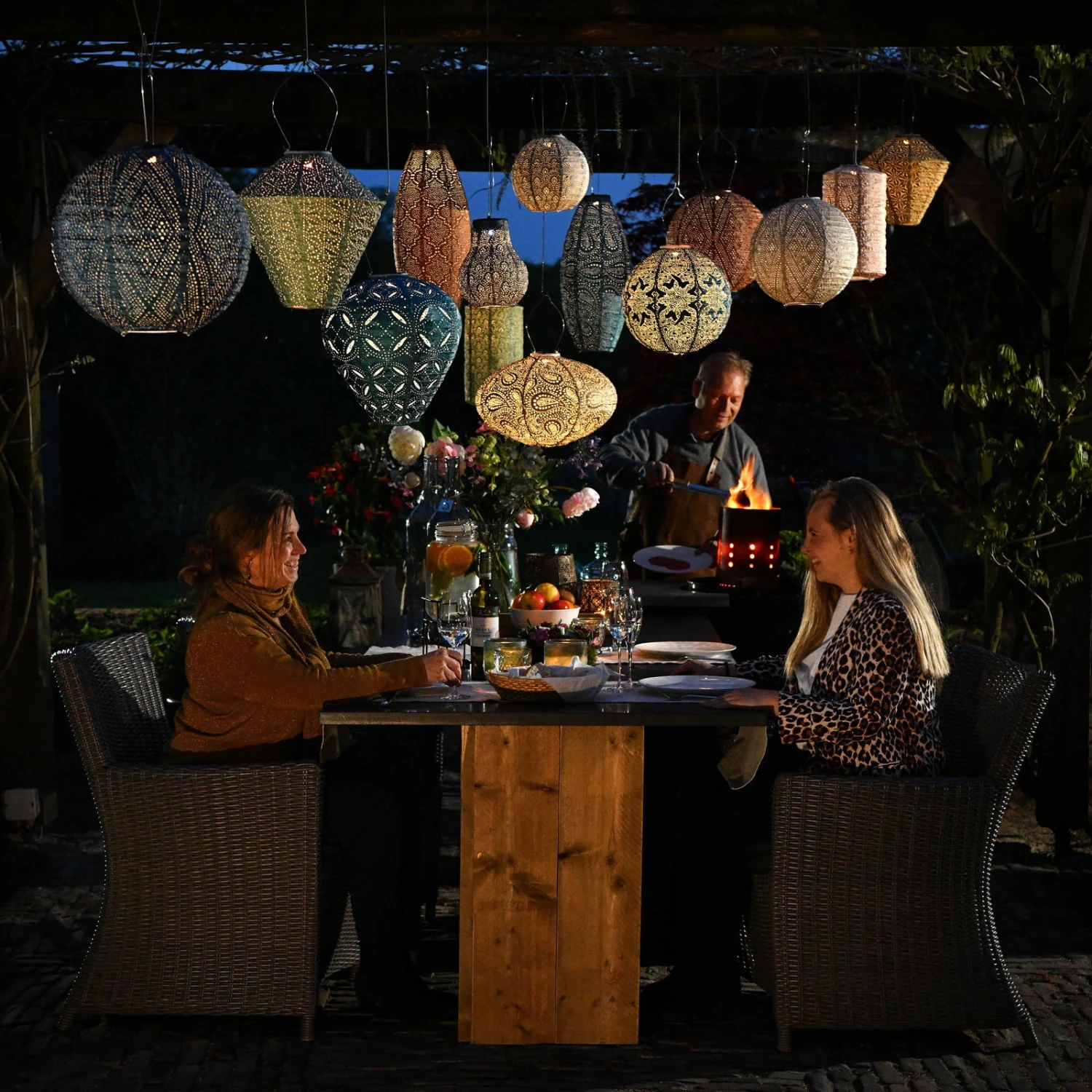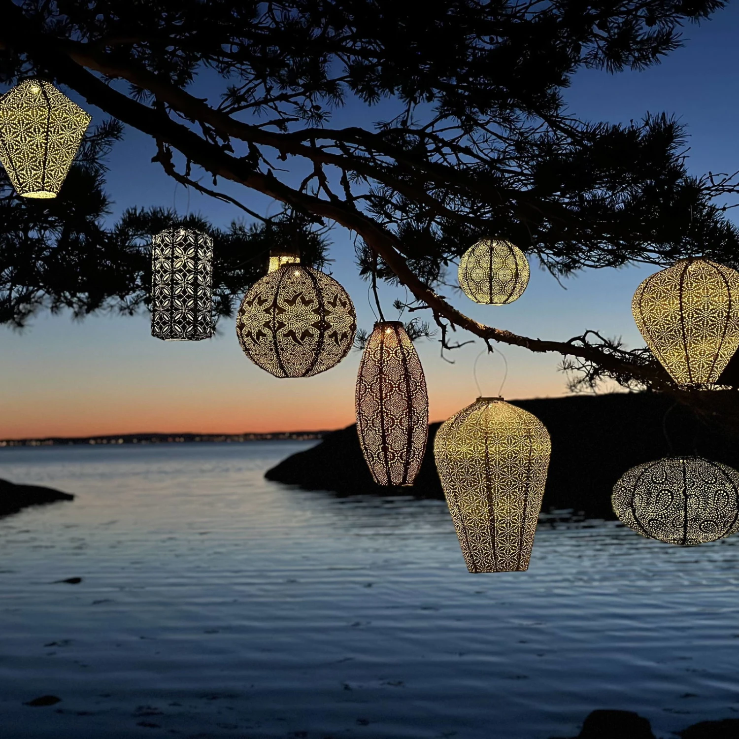Diese stilvolle Solarlaterne ‚Oval 40‘ im Farbton Gold spendet eine romantische Beleuchtung für laue Sommerabende. Beobachten Sie entspannt den Sternenhimmel und die schönen Lichtmuster der Laterne! Sie ist aus dem langlebigen Material Tyvek R1443 PU, 43 g/qm gefertigt und hat die praktischen Maße 40 x 27 cm.